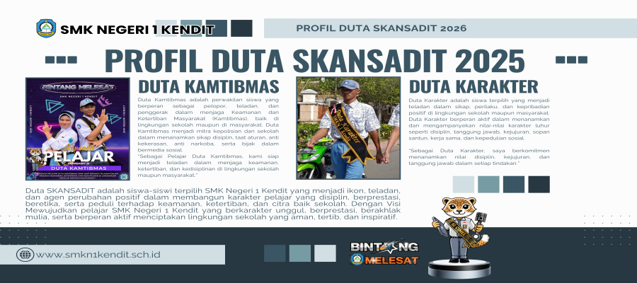 Dalam menyongsong SMKN 1 Kendit lebih BAIK 2025. Salah satu terobosan sekolah adalah meluncurkan program DUTA KARAKTER yang akan dibina menjadi siswa siswi yang memi