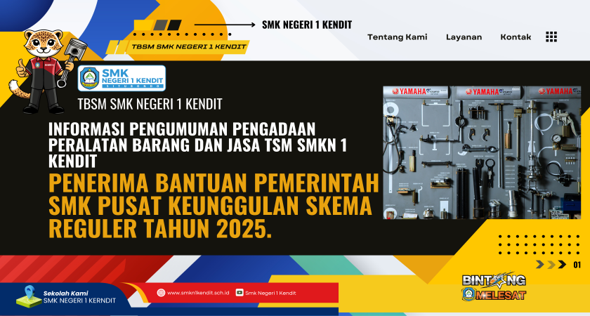 Informasi Pengumuman Pengadaan Peralatan Barang dan Jasa TSM SMKN 1 Kendit Penerima Bantuan Pemerintah SMK Pusat Keunggulan Skema Reguler Tahun 2025.